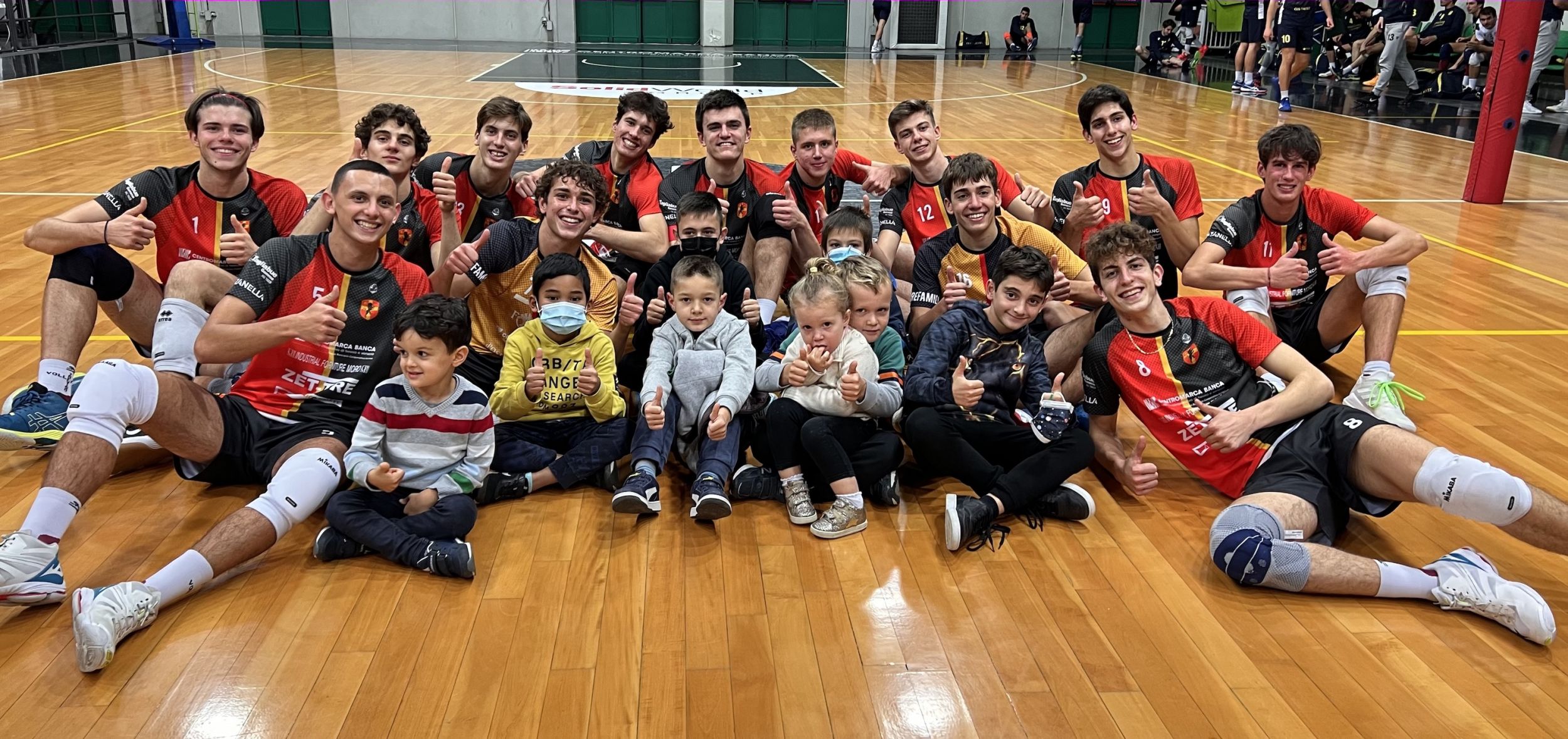 TREVISO – Tornata davanti al proprio pubblico dopo tre settimane, la serie B orogranata centra la terza vittoria in campionato conquistando altri tre punti nel duello contro il C.U.S. Trieste. In una serata nella quale i ragazzi di Zanin stentano a trovare un gioco continuo e fluido, faticando più del dovuto in attacco, la voglia di restare attaccati al risultato non viene mai meno e grazie al muro (15 punti nel fondamentale) e alla difesa (ottime quelle di Amarilli, premiato MVP a fine gara) riescono a domare i triestini, capitanati da un Vattovaz a tratti devastante (24 punti per lui). Dopo un primo set nel quale i trevigiani sembrano avere il gioco in mano, nel secondo Trieste rialza la testa e pareggia; il terzo set, finito ai vantaggi, è l’ago della bilancia della partita e sono i ragazzi di Zanin a farlo loro, con alcuni momenti di bella pallavolo. Nel quarto è tutto in discesa, coi triestini che si infrangono spesso sul muro orogranata, in primis su quello di Mazzon (5 muri per lui). Altri tre punti fondamentali in chiave salvezza quindi per Treviso che sabato prossimo incontrerà la neopromossa Cornedo. Bel momento a fine gara in Ghirada con i bambini presenti tra il pubblico che hanno raggiunto i giocatori orogranata per una foto a centro campo.